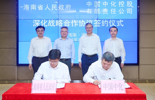 2月12日,中國中化與海南省人民政府在海口簽署深化戰(zhàn)略合作協(xié)議,海南省副省長陳懷宇與中國中化副總經(jīng)理陽世昊代表雙方簽約。海南省委書記沈曉明、省長馮飛與中國中化董事長李凡榮、副總經(jīng)理張方見證簽約。