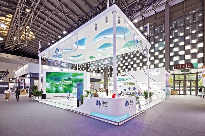 本次博覽會上,中國中化主要以八大行業解決方案為主體展示,包括農業與動物營養、交通運輸、電子電氣、新能源、環境工程、建筑與基礎設施、健康與醫療、皮革紡織與美容個護。在現場,五彩繽紛的種子墻,琳瑯滿目的MAP beSide農產品,仿真復刻土壤治理成效的沙盤,與人們生活息息相關的下游消費品,可愛的小化周邊等展示內容,吸引眾多參展觀眾走進展臺,駐足參觀、交流問詢。