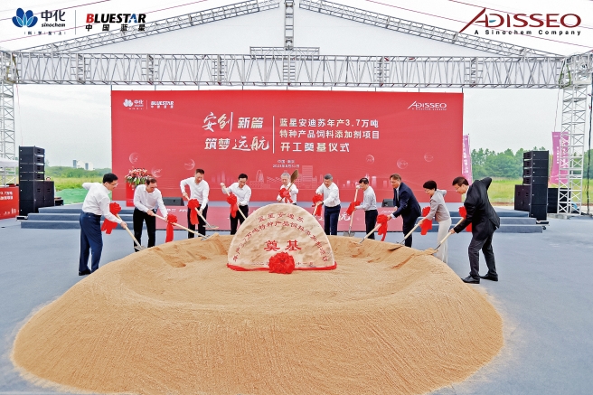 8月31日,藍星安迪蘇3.7萬噸/年特種產品飼料添加劑項目(以下簡稱FOSIC項目)開工奠基儀式在位于南京溧水區的南京國家農業高新技術產業示范區舉行。中國中化副總經理、黨組成員陽世昊,南京市委副書記、南京國家農高區黨工委(籌)書記沈文祖等出席儀式并致辭。
